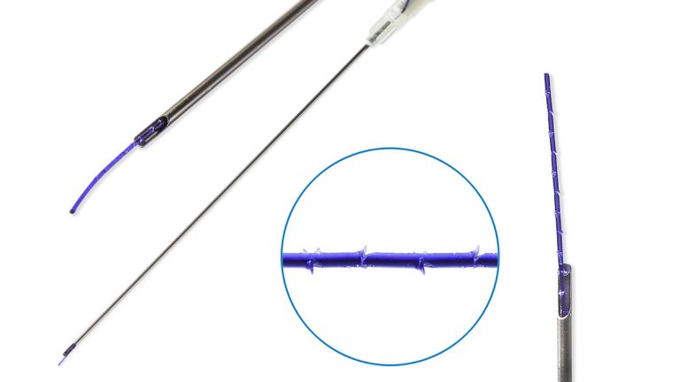 The thin and elastic needle that enables a cosmetician to perform modeling within different skin levels, and threads made of polydiaxon PDO (totally bio-degradable and fully compatible with human tissues).